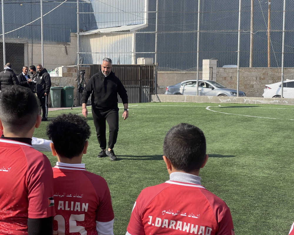 وفي بداية الزيارة الى الملعب استقبل سعيد العزة رئيس اللجنة الشعبية للخدمات بالمخيم ومنذر عميرة رئيس مركز شباب عايدة واعضاء ادارة المركز ومروان فرارجة امين سر فتح بالمخيم وممثلي عدد من المؤسسات رئيس بلدية بيت لحم ماهر قنواتي وشكروه على الزيارة.