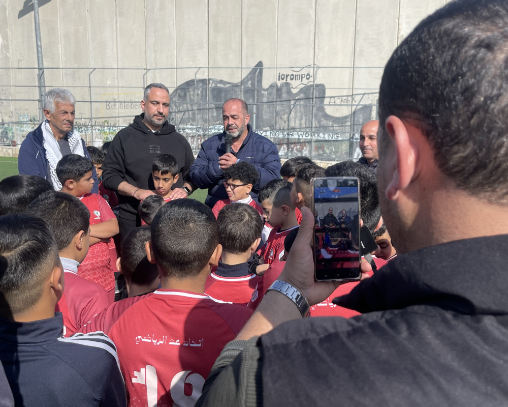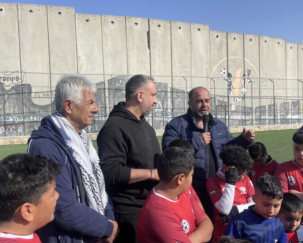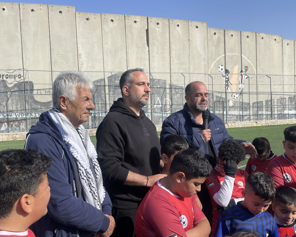 واكد عميرة على ترحيبه برئيس بلدية بيت لحم واشار الى ان رسالة فعالية اليوم وكل الفعاليات لحماية الملعب هي للمجتمع الدولي لمطالبته بحماية الملعب و وقف هدمه.