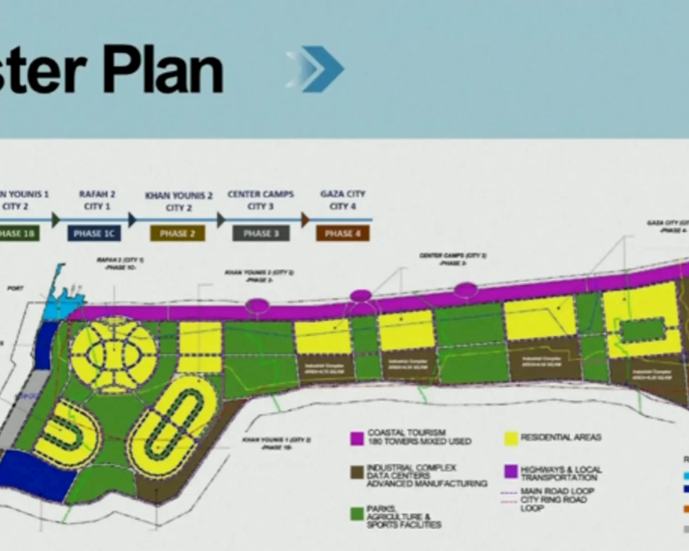 وبين كوشنر أن الخطة تستهدف تحقيق التوظيف الكامل في القطاع، وتهيئته ليصبح مركزاً اقتصادياً واعداً، عبر مراحل تنموية تشمل البنية التحتية والإسكان والفرص الاستثمارية.