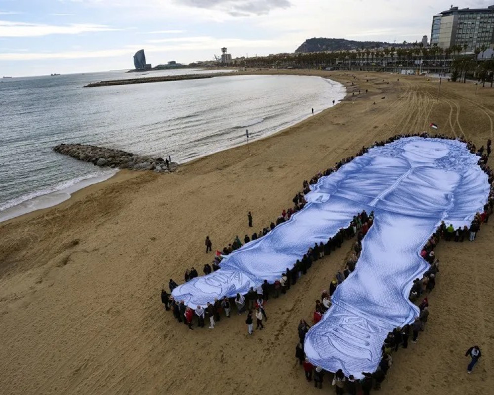 برشلونة /PNN / في مبادرة رمزية لافتة، نشرت المنظمة الدولية Avaaz لافتة ضخمة بطول 55 مترًا تحمل صورة الطفلة الفلسطينية هند رجب، التي قُتلت قبل عامين بنيران إسرائيلية، وذلك للمطالبة بالحرية والكرامة للشعب الفلسطيني.