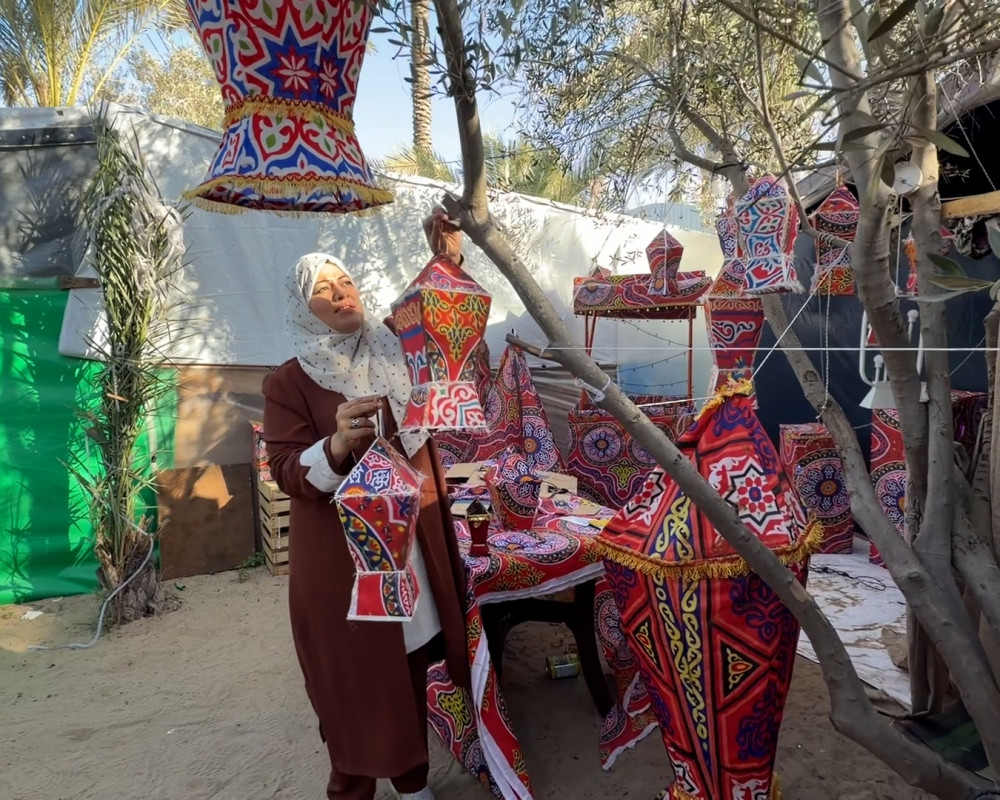 وتقول :" لطالما ارتبطت اجواء رمضان في غزة بالفاونيس منذ الصغر وانا اليوم اشعر بسعادة كبيرة مع مشاهدة الاطفال والنساء ياتون لمشاهدة وشراء الفوانيس الرمضانية التي تامل ان تدخل الفرحة لقلوبهم وان كان معظمهم يعيشون في خيام النزوح لكن هذه الخياة مزينة بفوانيس رمضان".