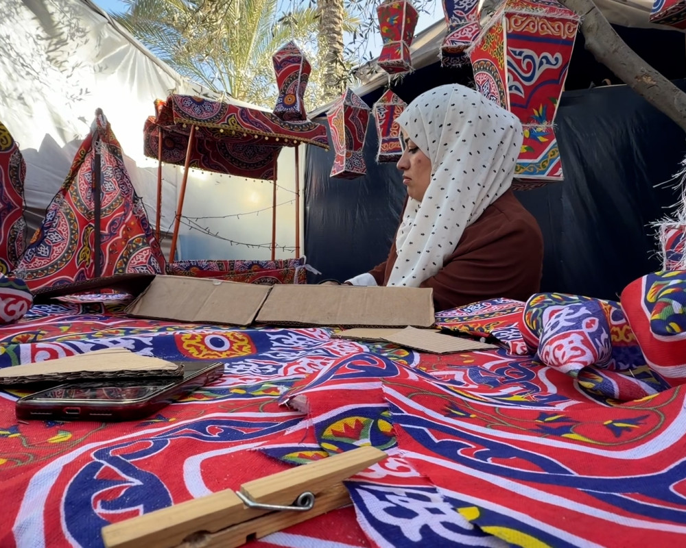ريهان، صانعة فوانيس رمضان، عاشت سنوات الحرب الأخيرة وهي تتنقل من مكان إلى آخر، تعيش النزوح والخسارة لكنها لم تفقد الأمل. تقول: "مررنا بأيام صعبة جدًا، والنزوح كان مستمر معنا من مكان إلى مكان".