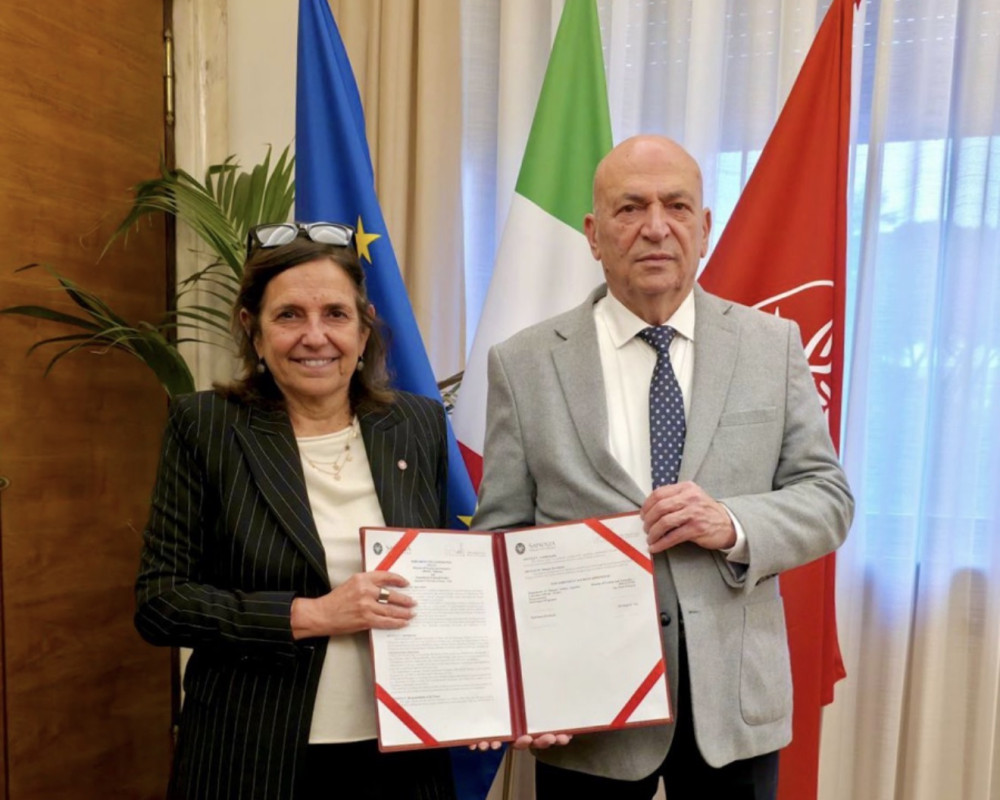 كما والتقى الحايك برئيسة جامعة سابينزا، حيث جرى توقيع اتفاقية تعاون بين الجامعة ووزارة السياحة والآثار في مجال الآثار والبحث العلمي، تشمل دعم البعثات الأثرية المشتركة، وتبادل الخبرات الأكاديمية وتنفيذ برامج تدريبية متخصصة،